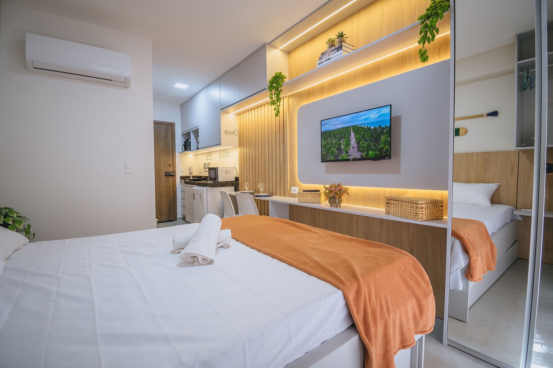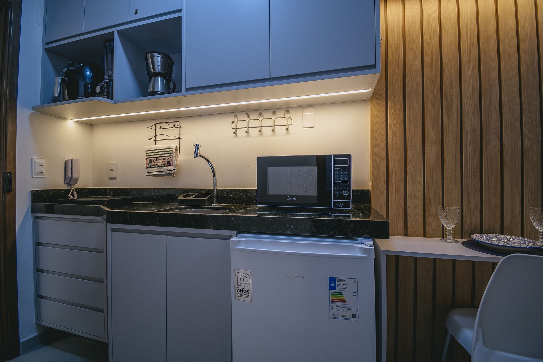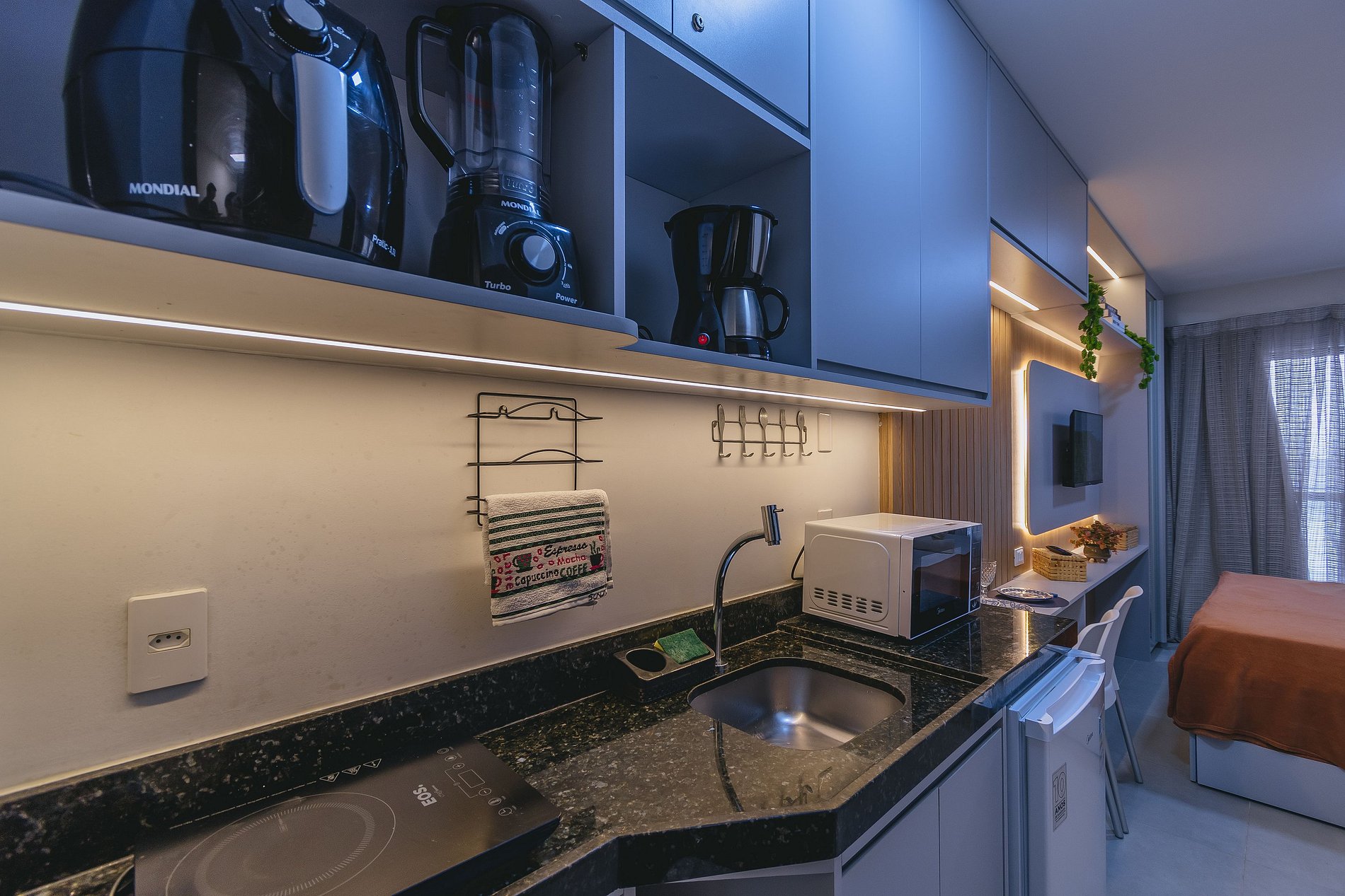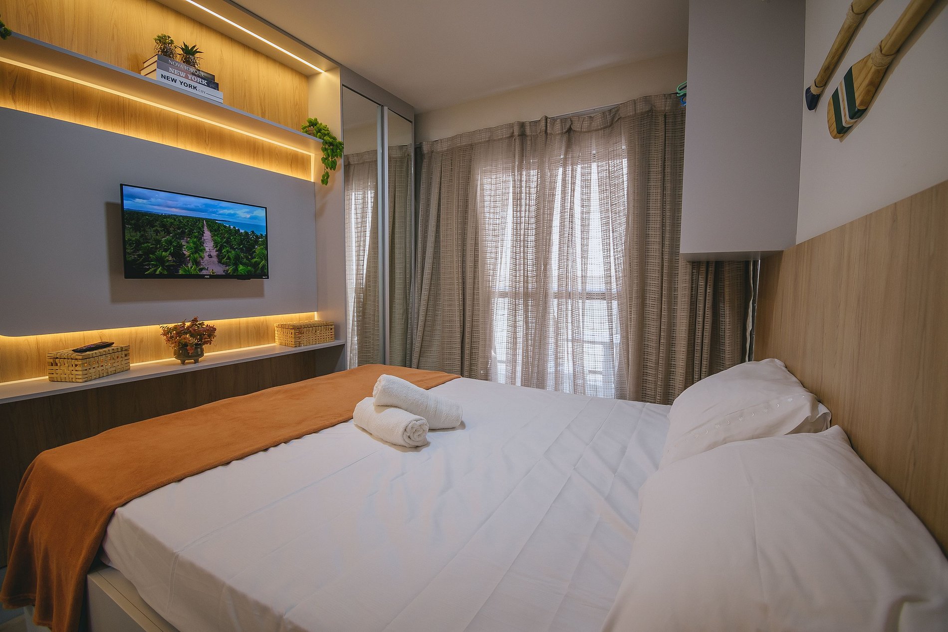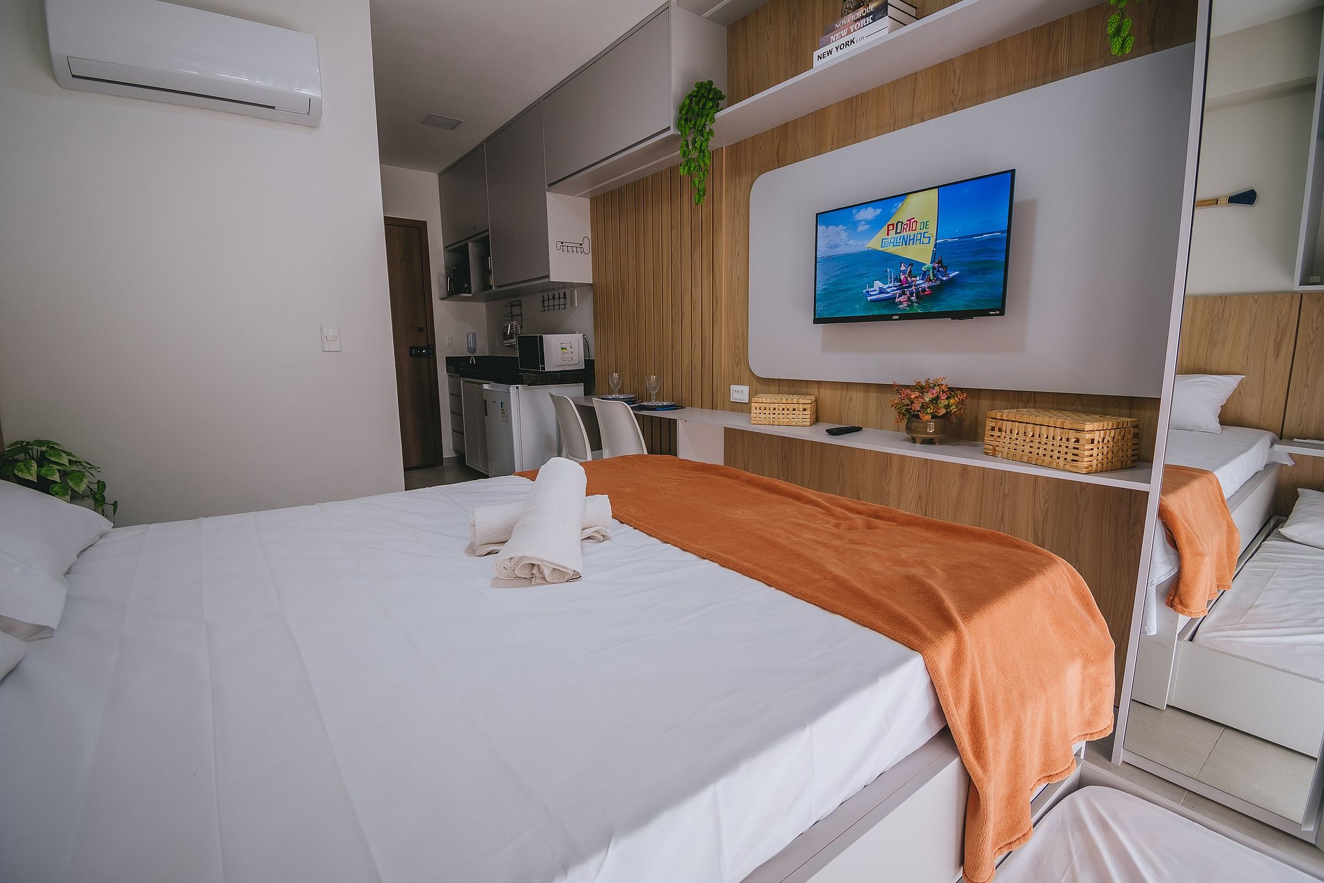 O studio se destaca pela combinação de localização privilegiada próximo à praia com um ambiente moderno, funcional e bem decorado. Cada detalhe foi pensado para oferecer conforto e praticidade, com cama confortável, ar-condicionado, Wi-Fi de qualidade e cozinha equipada. A iluminação aconchegante e o clima tranquilo do condomínio contribuem para uma estadia relaxante, fazendo com que os hóspedes se sintam em casa desde o primeiro momento.