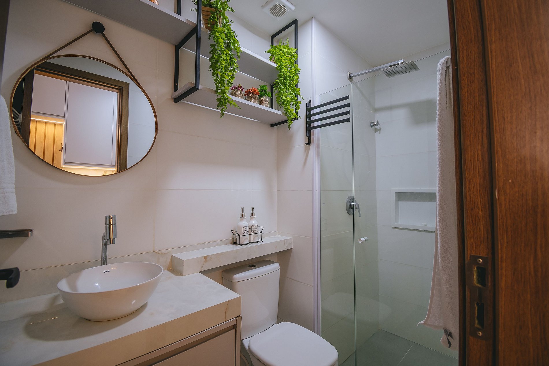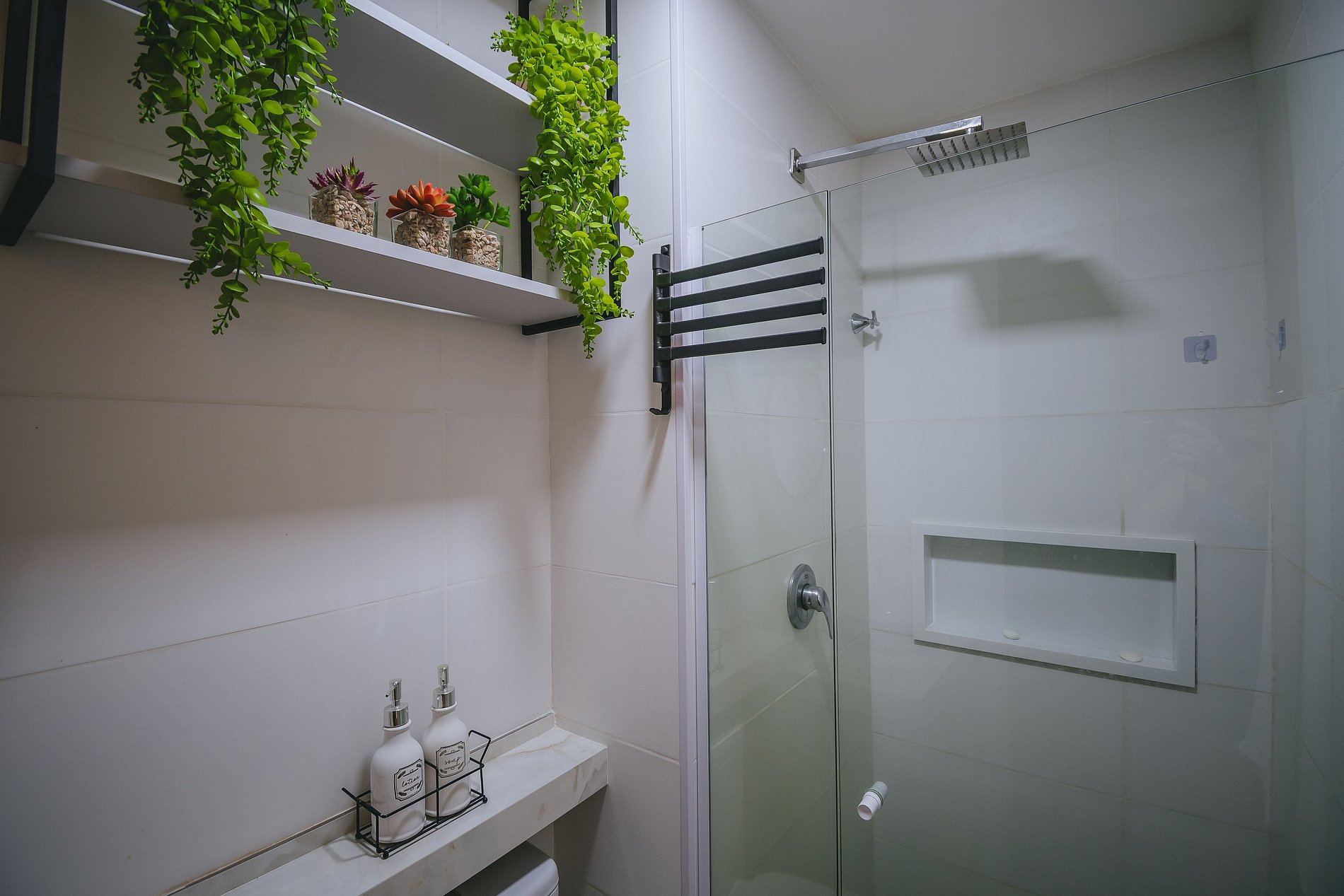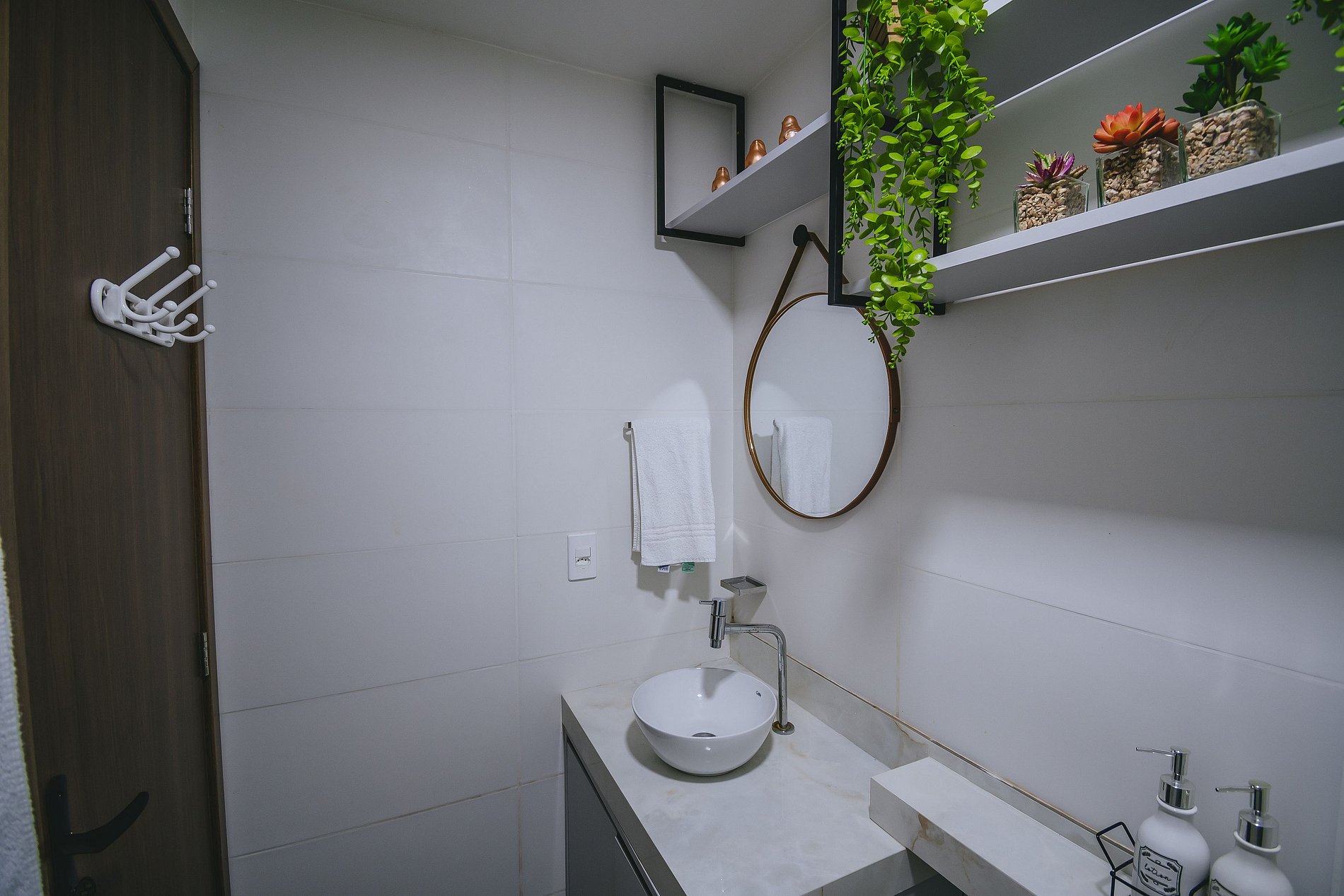 - A entrada no apartamento é feita através de senha numérica enviada antes do check-in.