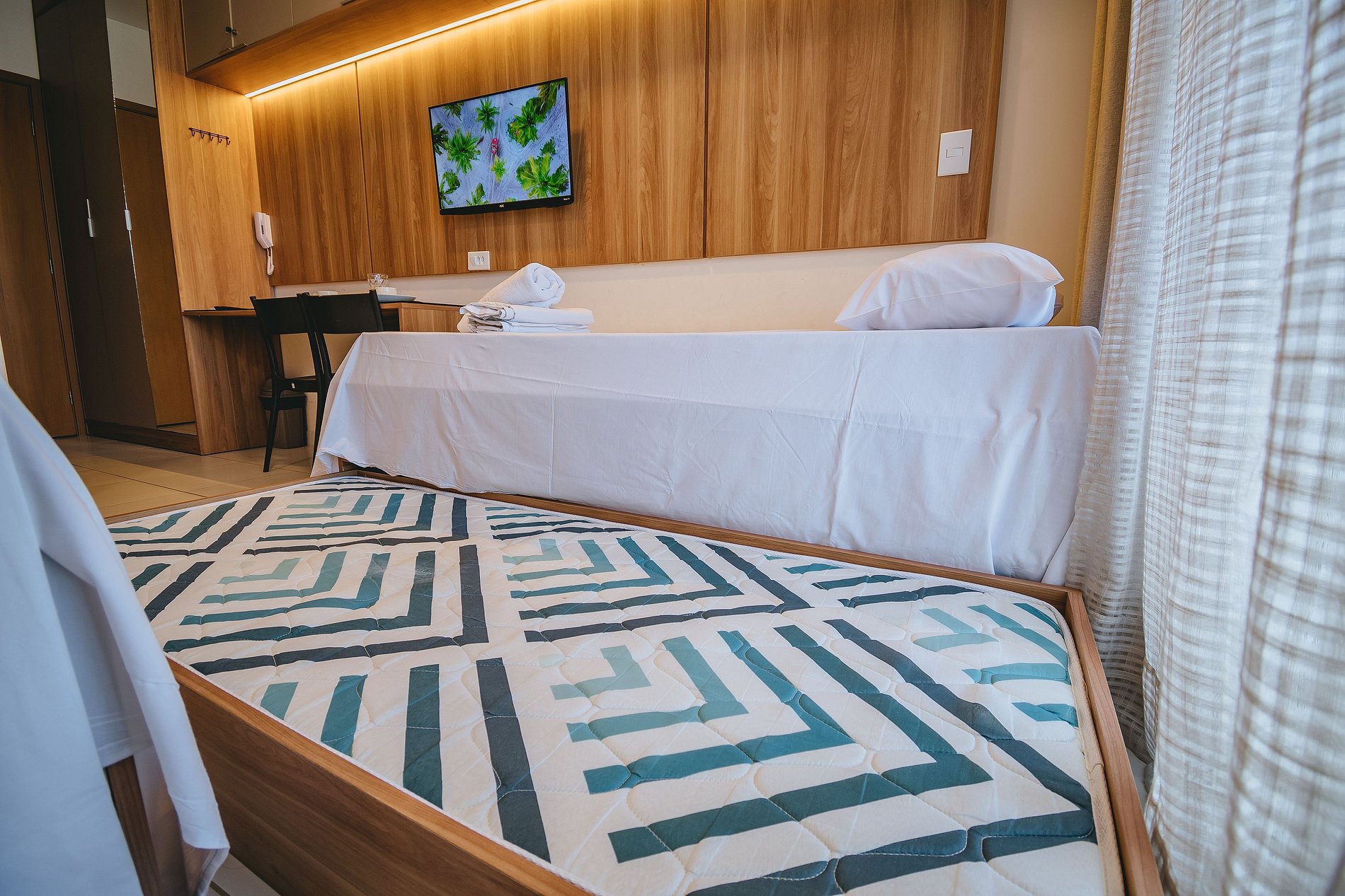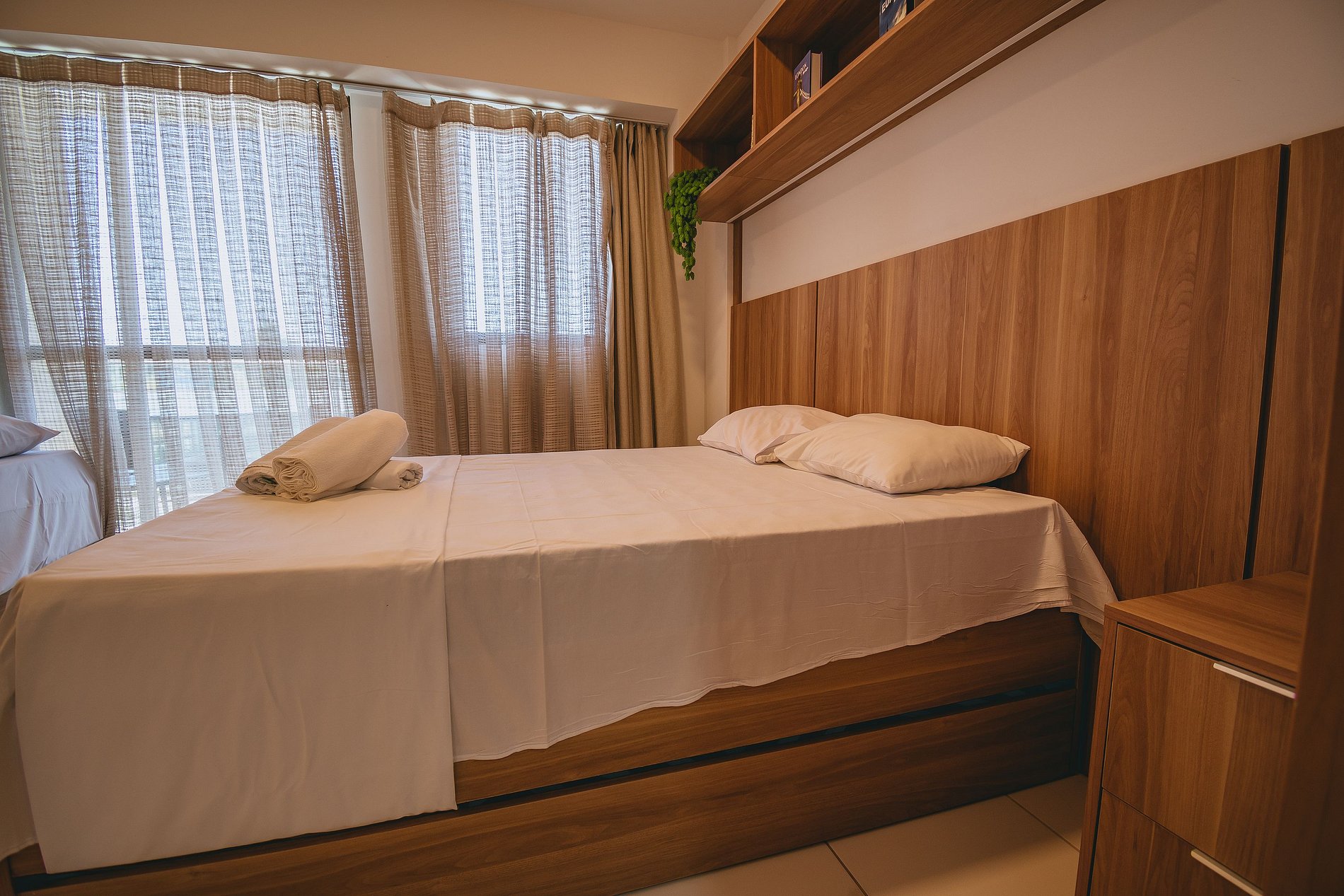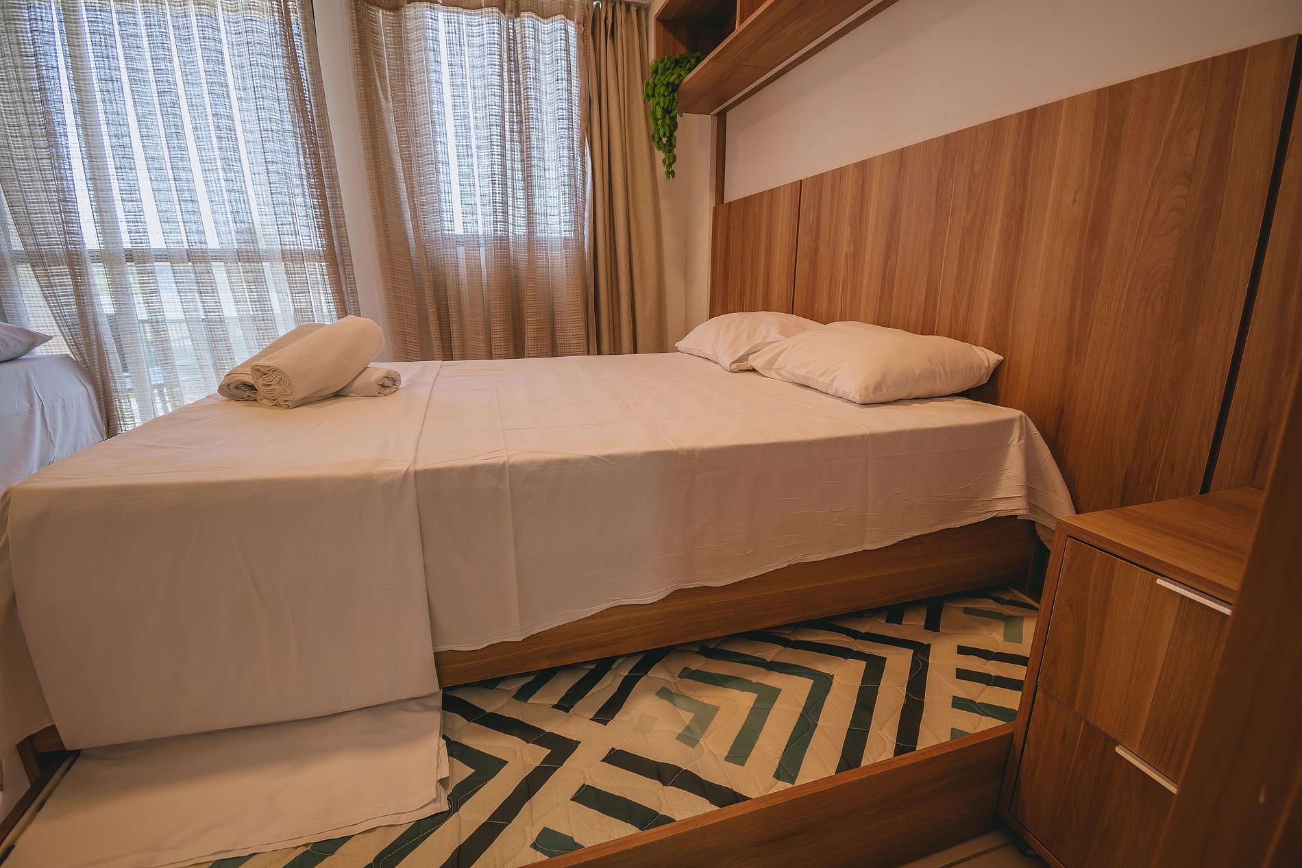 - A unidade conta com 01 cama de casal com cama auxiliar e 01 cama de solteiro com cama auxiliar