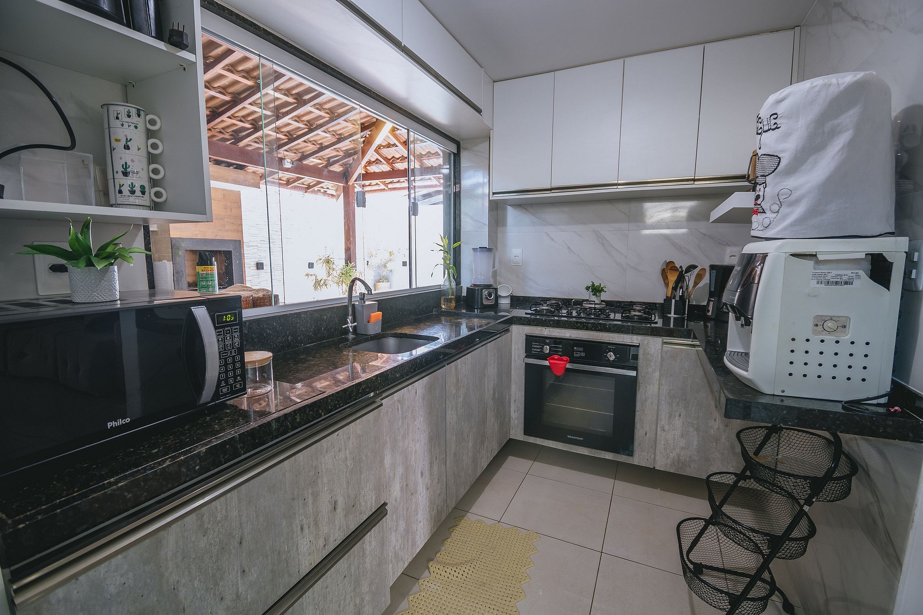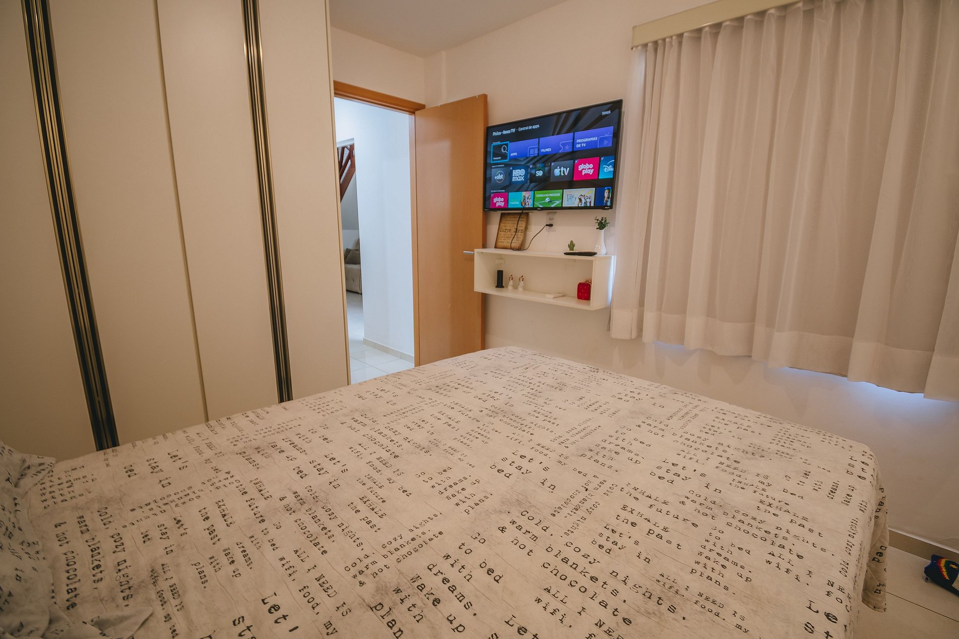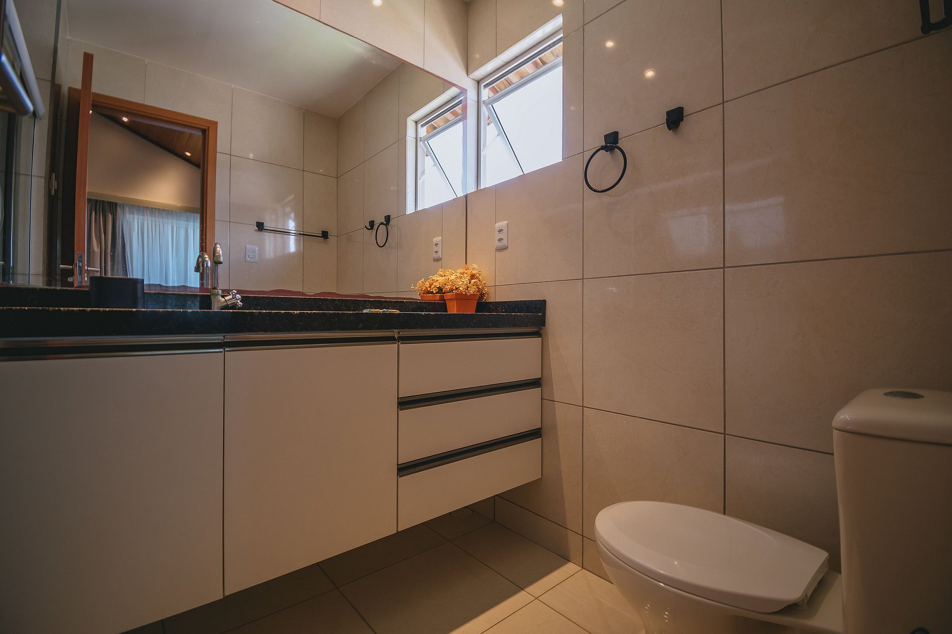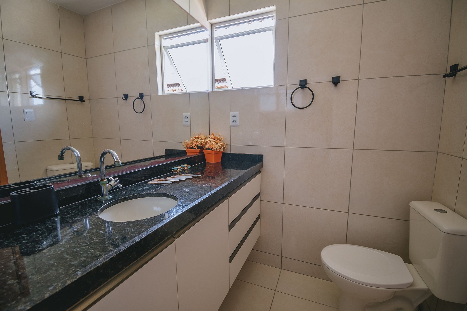 Casa extremamente confortável, situada em condomínio com excelente infraestrutura, que inclui piscina coletiva, salão de festas, campo de futebol e parquinho infantil.