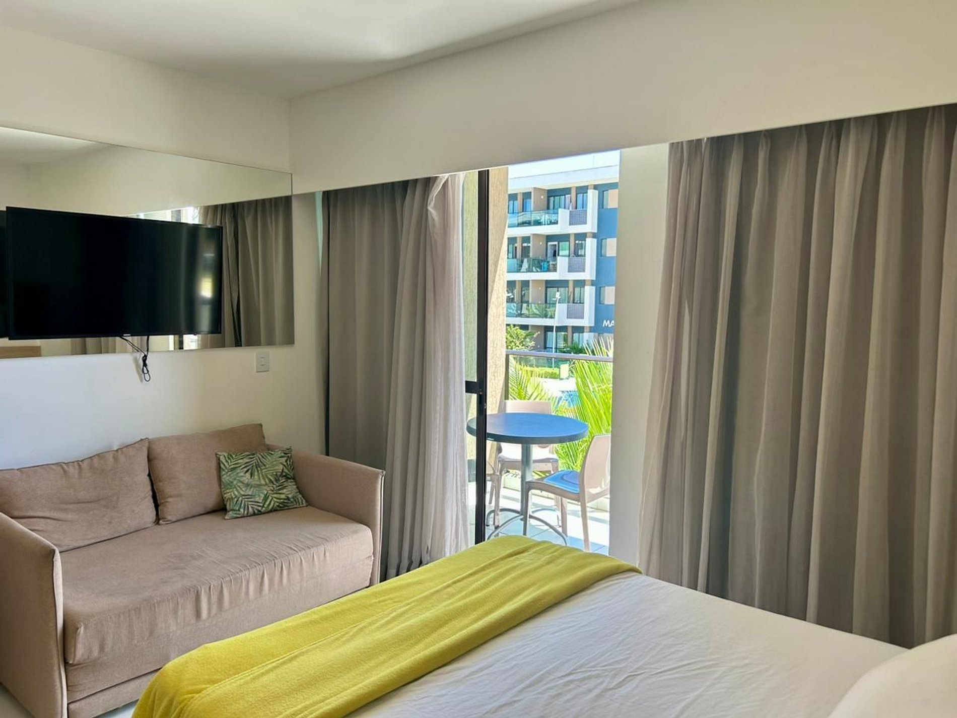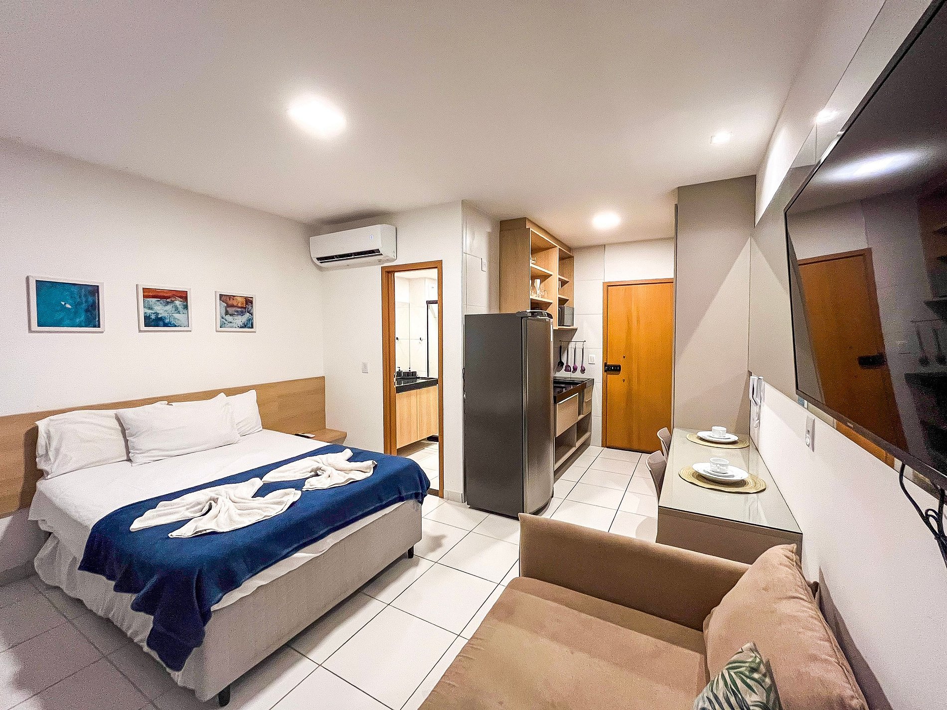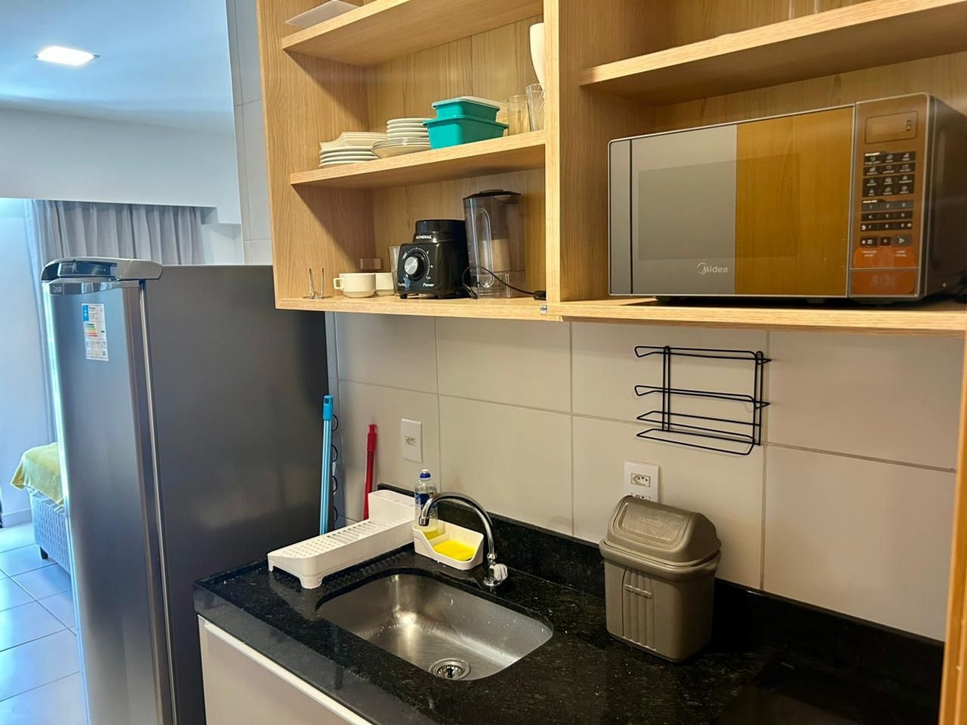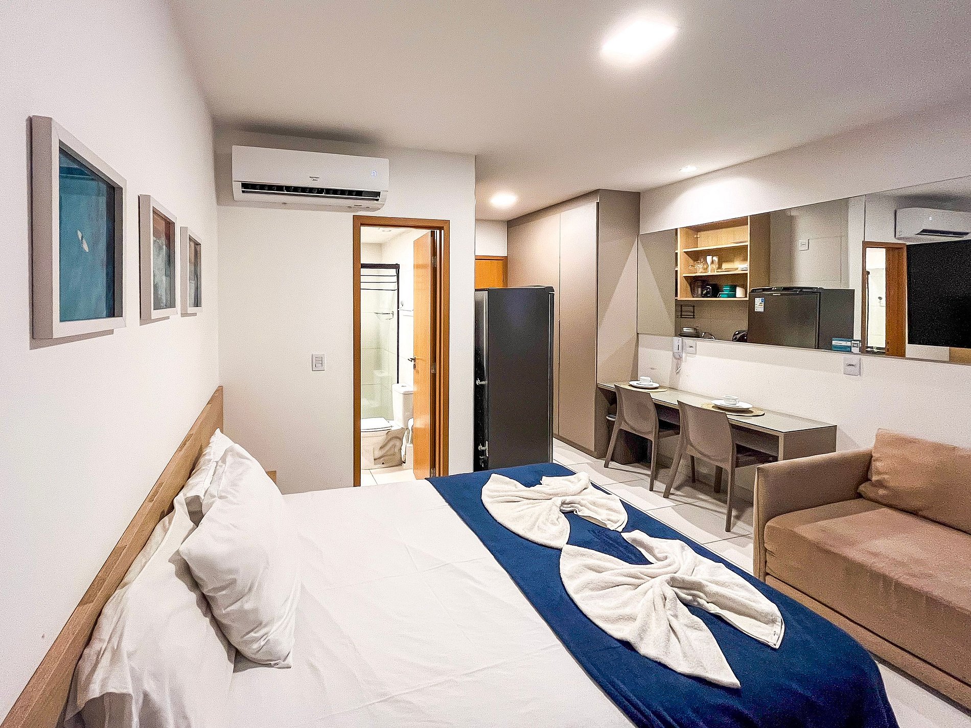 O apartamento de 30 m² acomoda até quatro pessoas com o conforto que você precisa: ar-condicionado, TV, Wi-Fi, varanda e uma cozinha compacta equipada, ideal para quem busca uma estadia funcional e agradável pertinho da praia. É o lugar ideal para quem deseja curtir a praia com conforto. Entre os principais atrativos estão piscina, jacuzzi, academia, restaurante, salão de jogos, campo de futebol, academia e espaços amplos para momentos de descanso e diversão.