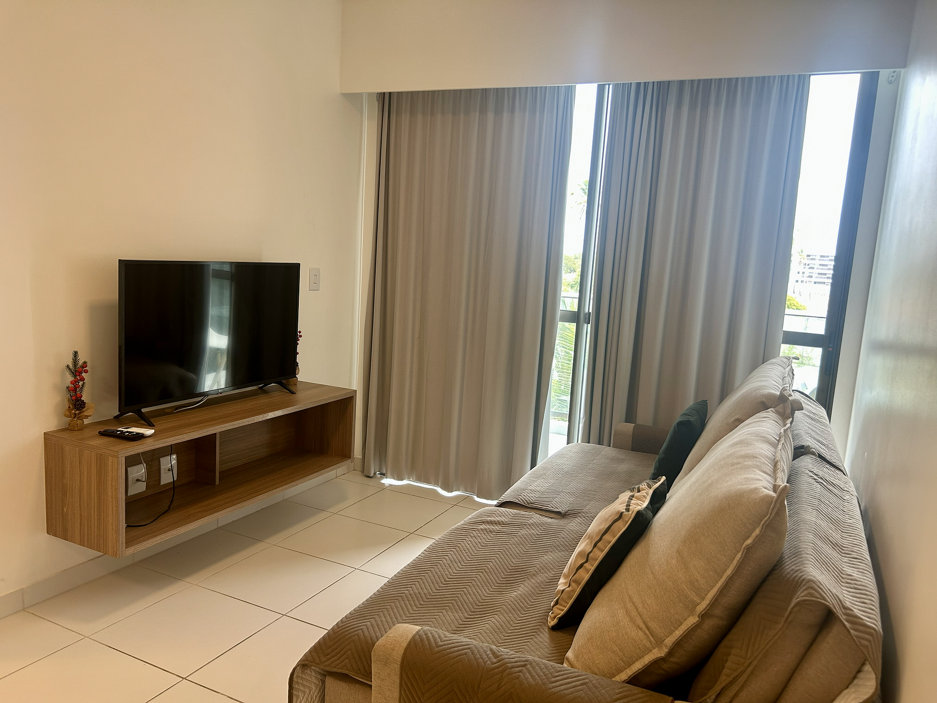 O apartamento se destaca pelo ambiente aconchegante, bem distribuído e funcional, pensado para oferecer conforto e praticidade durante a estadia. A varanda com vista para a piscina traz uma atmosfera relaxante, ideal para momentos de descanso.