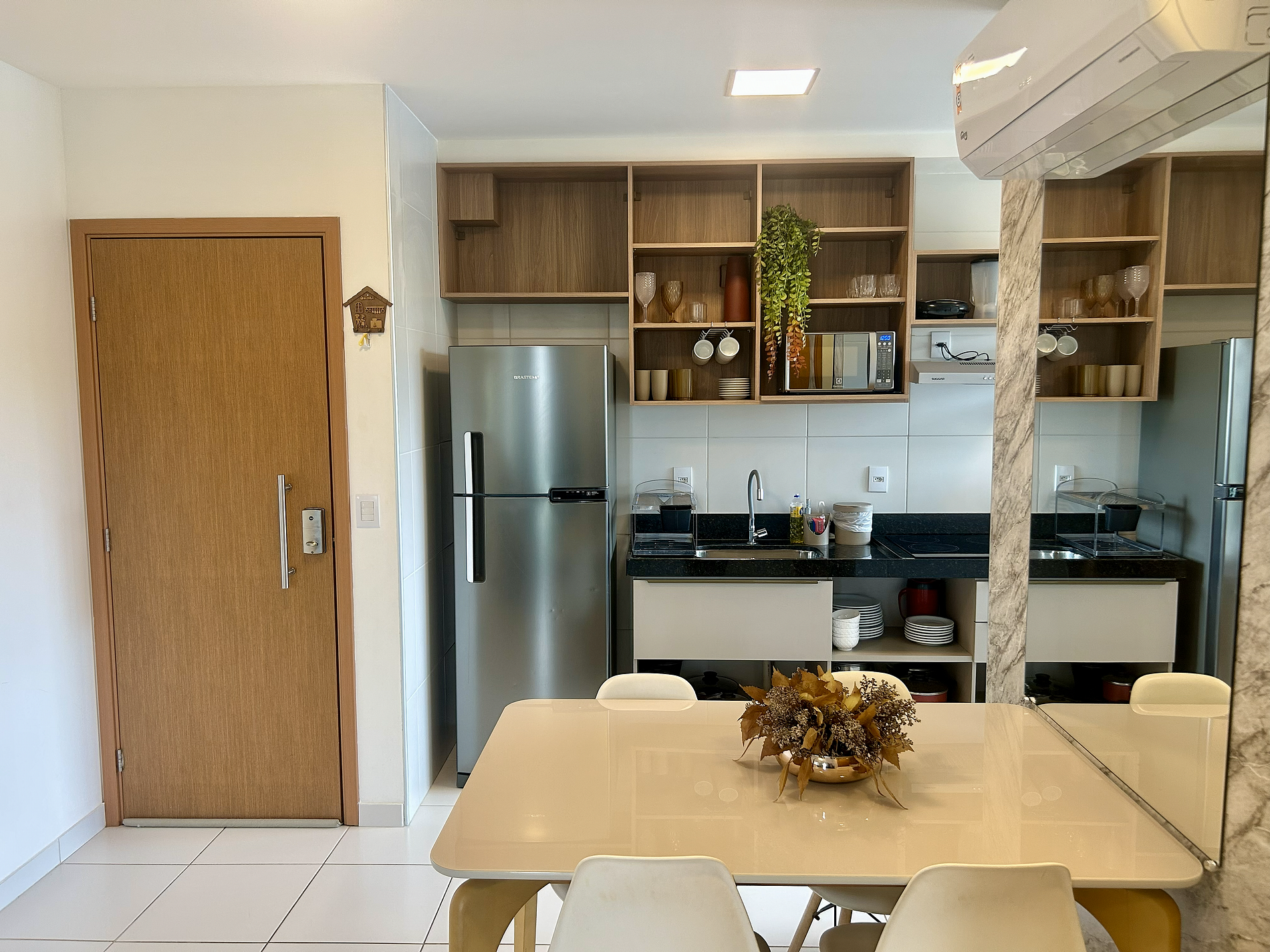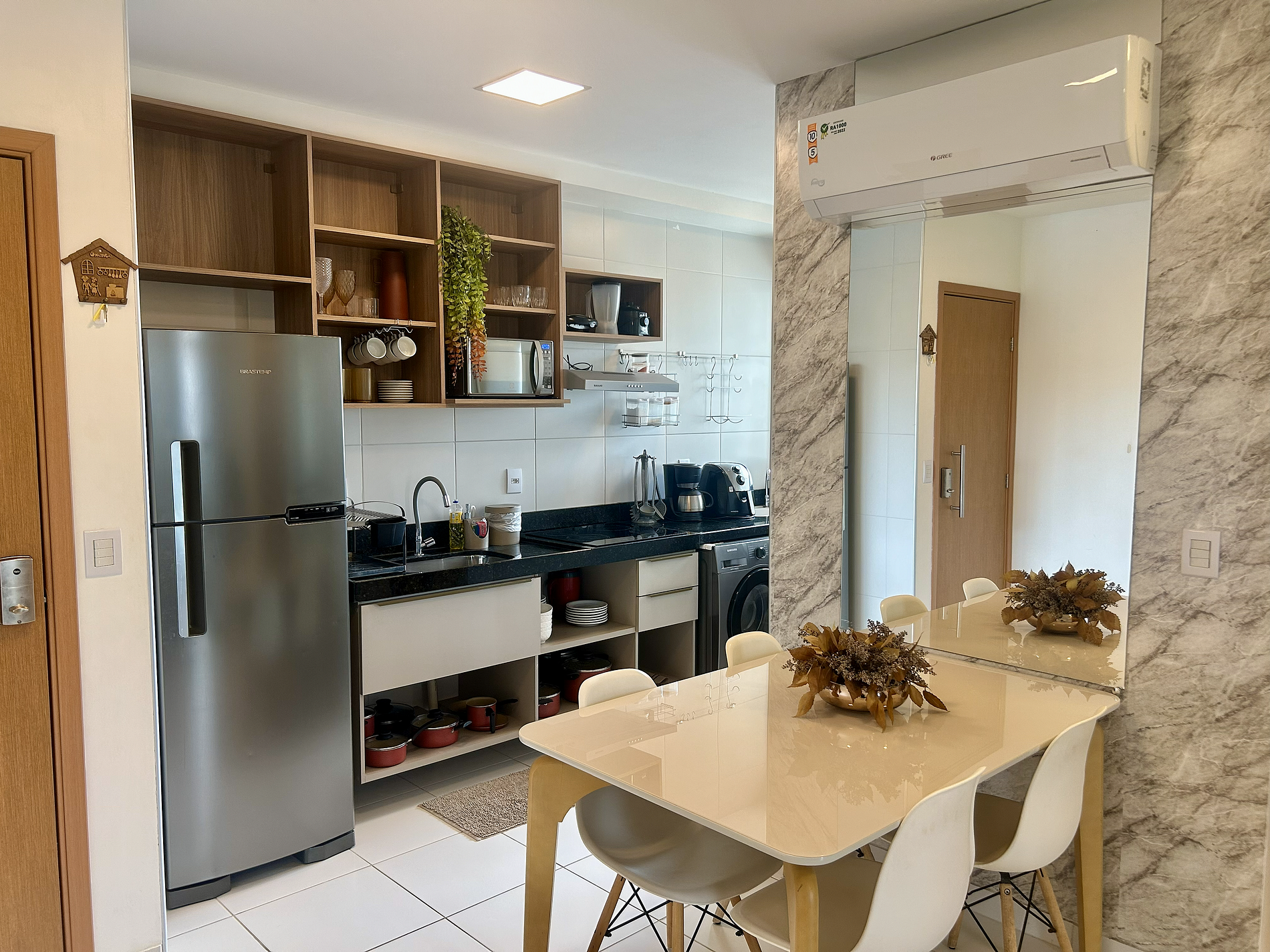 - A entrada no apartamento é feita através de senha eletrônica.