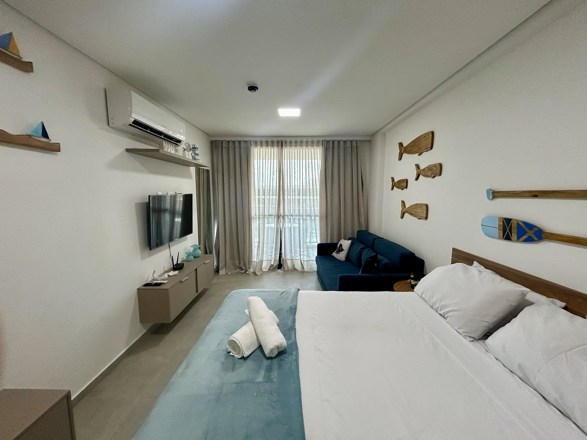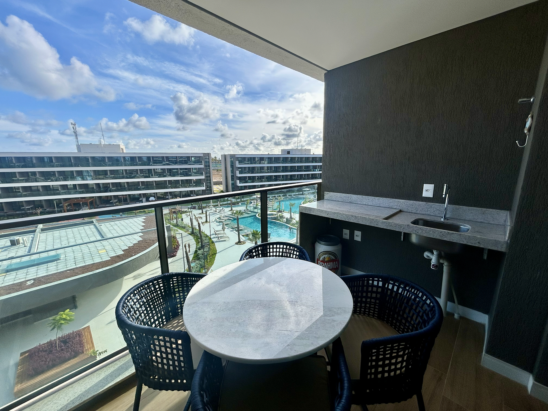 Flat récem-entregue, charmoso e moderno no Beach Class Solare - Muro Alto. Aproveite um espaço projetado para o conforto dos hóspedes, com wi-fi, móveis e eletrodomésticos modernos.