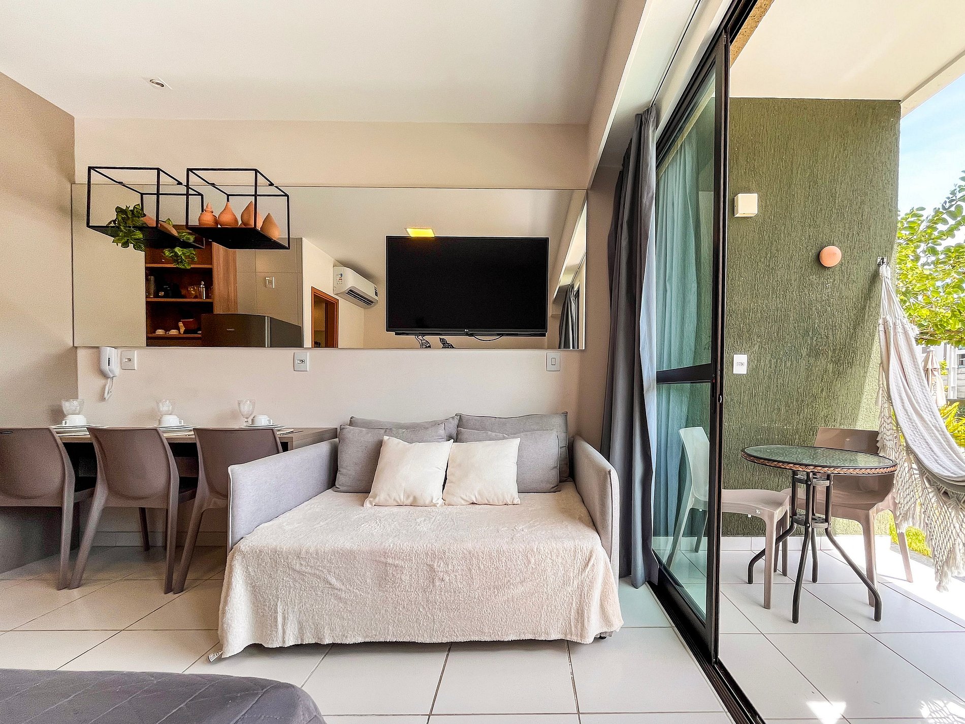 Studio de luxo confortável e bem equipado no Condomínio Mana Beach, em Muro Alto, com varanda térrea tipo garden. Ideal para até 4 hóspedes, conta com Cama Queen e Sofá-Cama confortável. O condomínio oferece estrutura completa de resort com restaurante, área de lazer, complexo de piscinas, perfeito para relaxar e curtir a praia com praticidade e conforto.