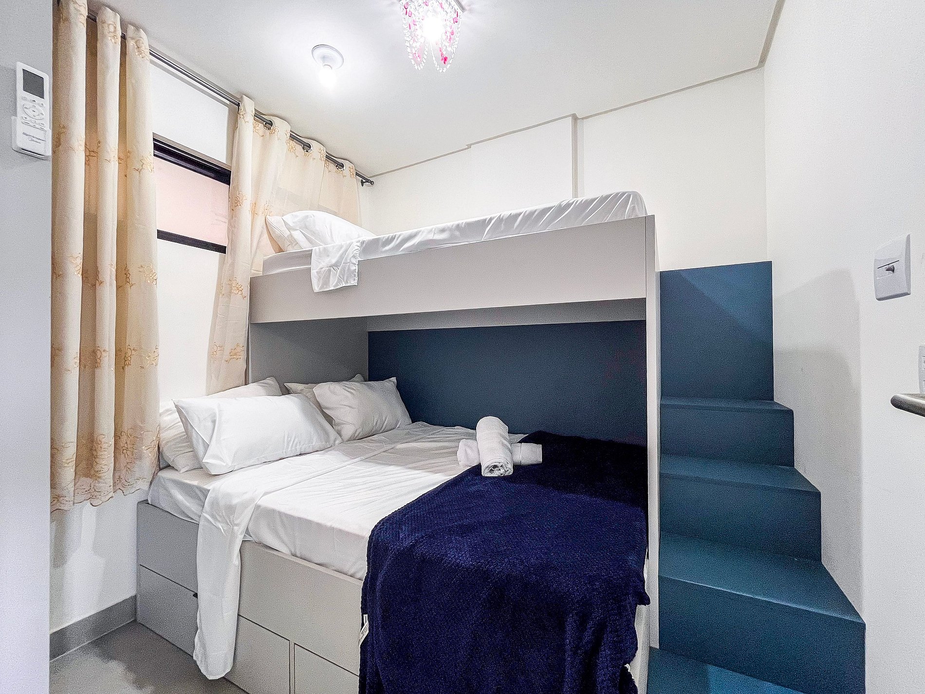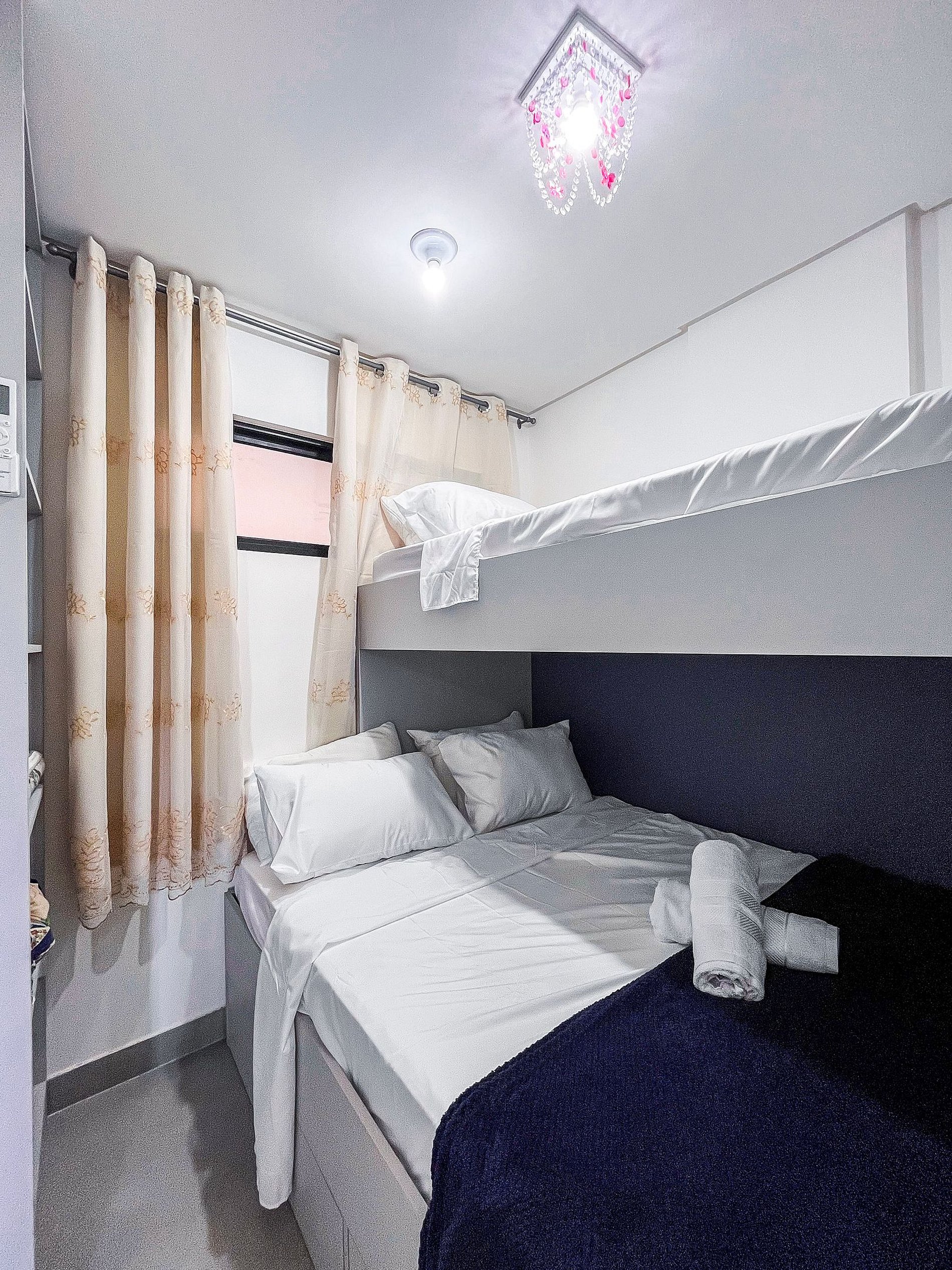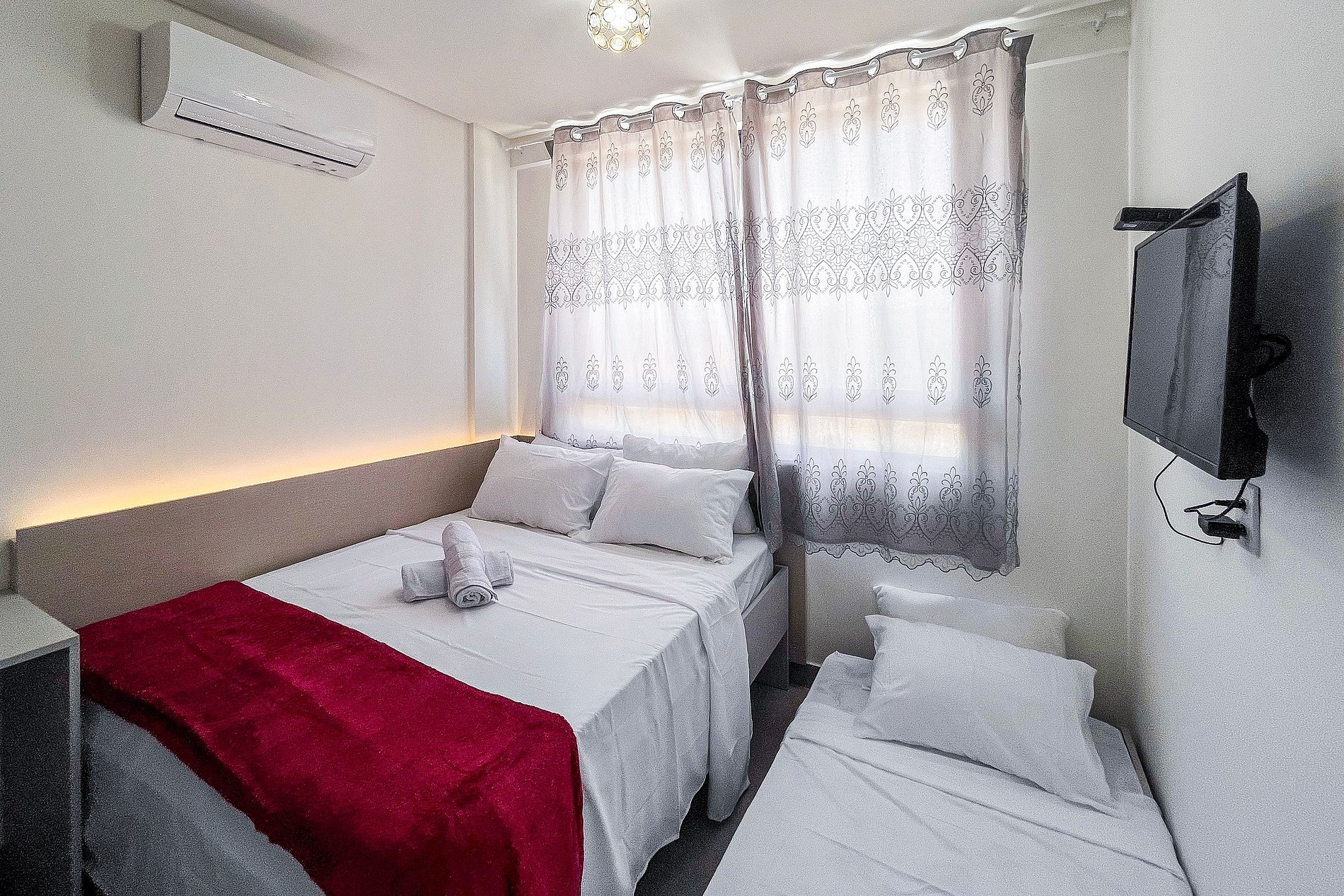 Todos os quartos possuem ar condicionado e também há na sala de estar. A composição dos quartos é de: