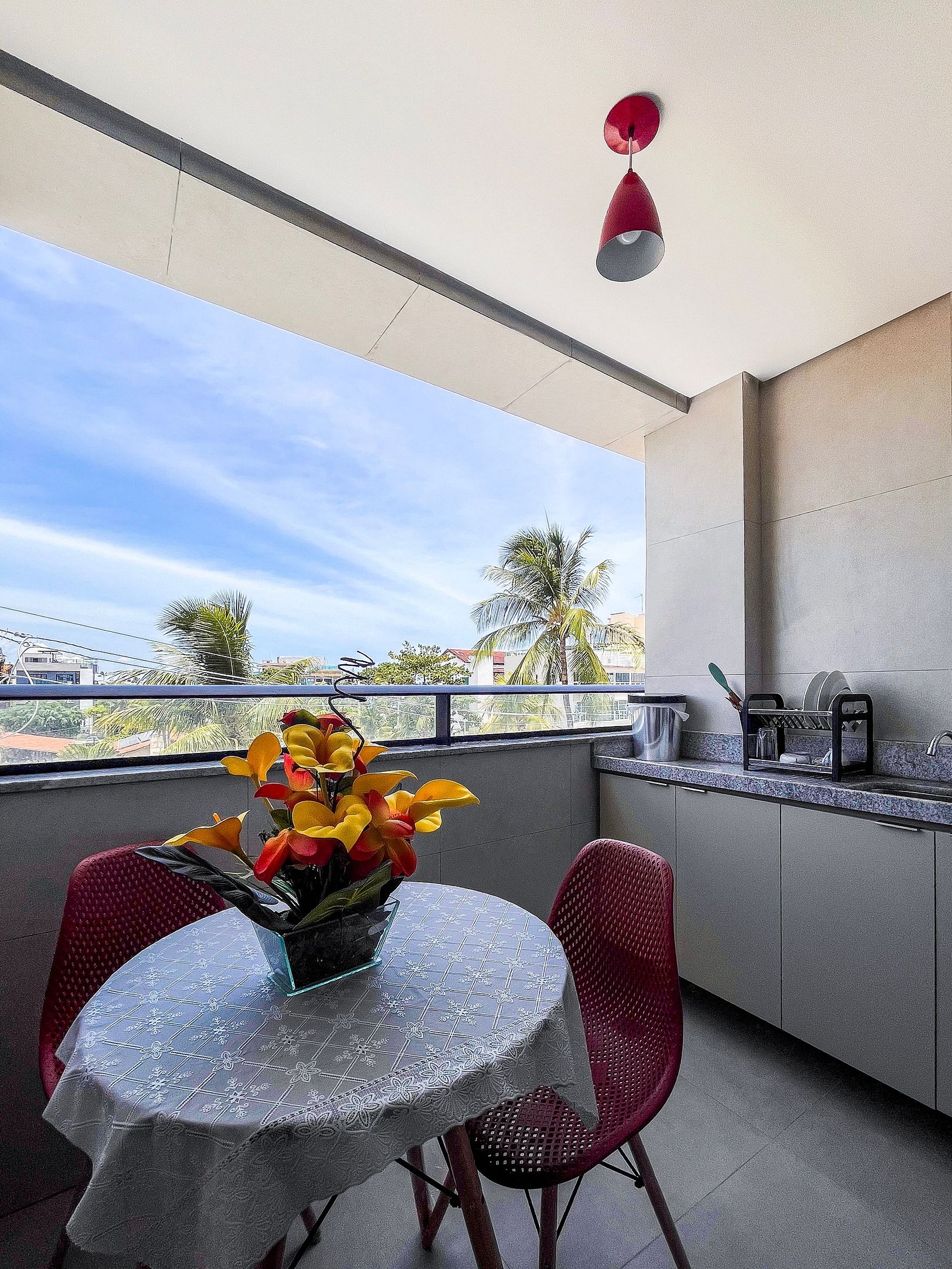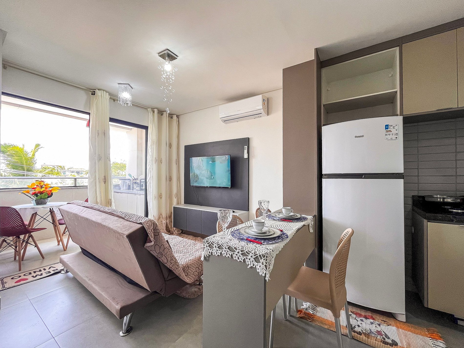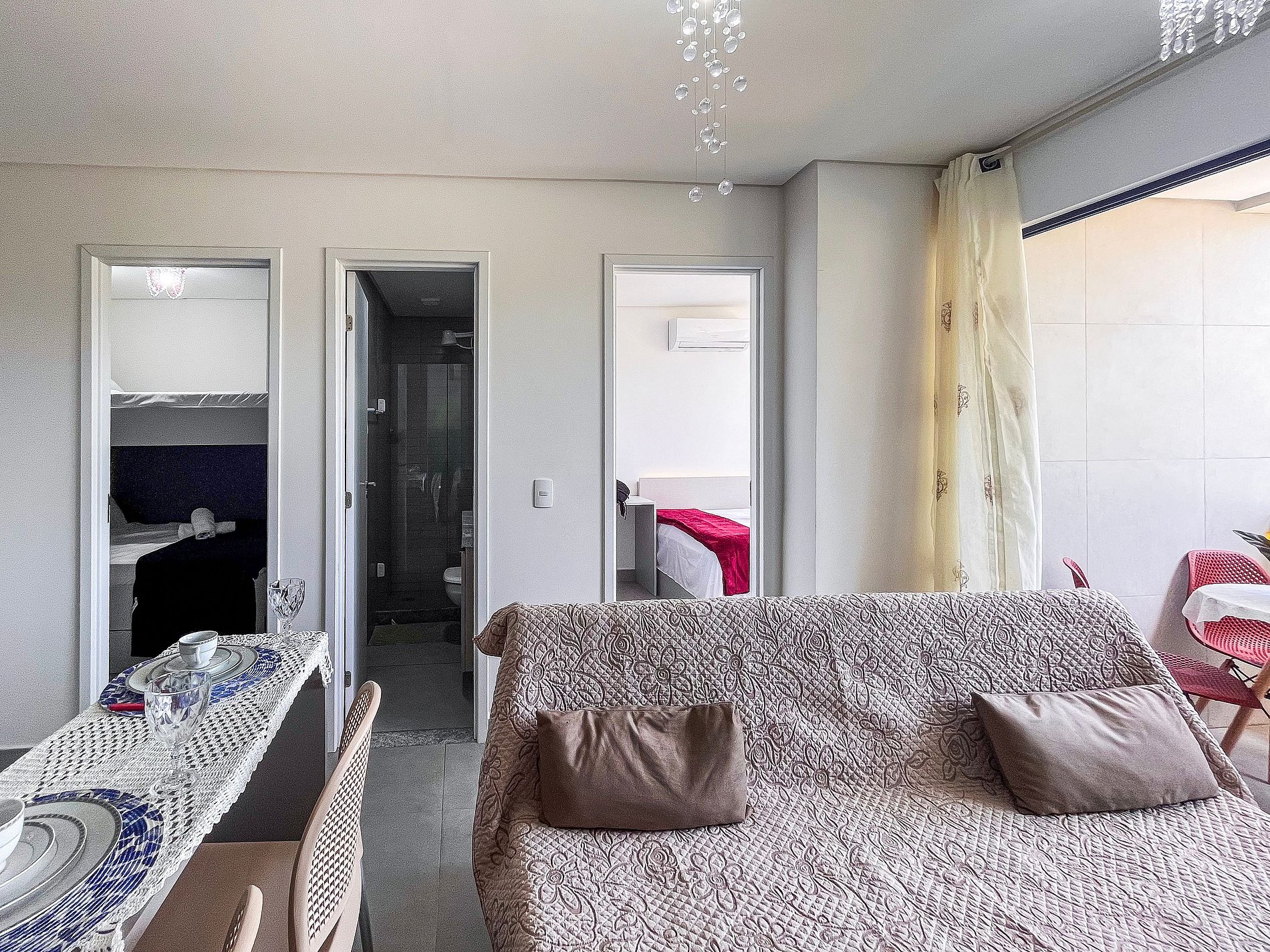 - A entrada no apartamento é feita através de fechadura eletrônica com senha disponibilizada previamente ao check-in.