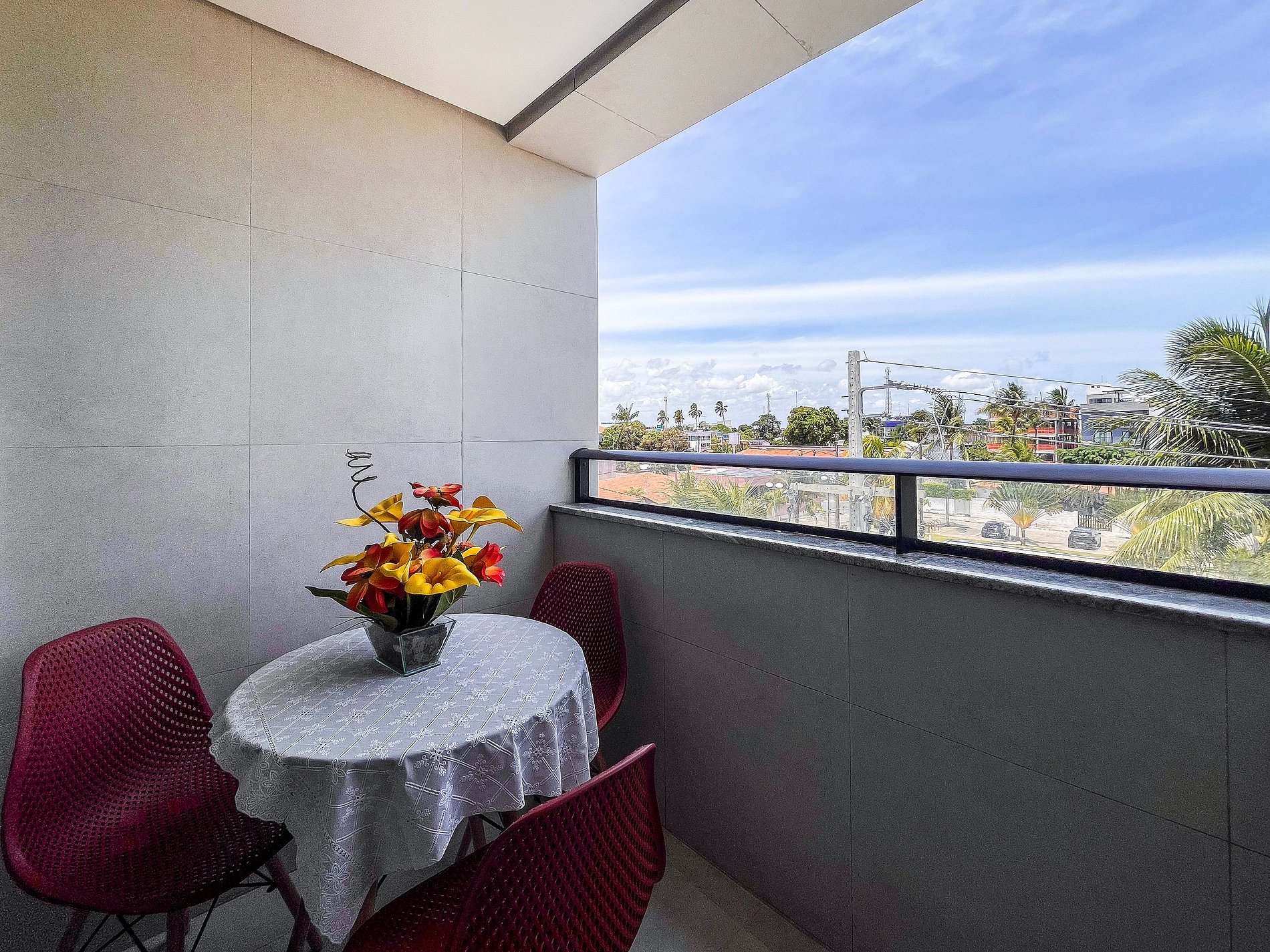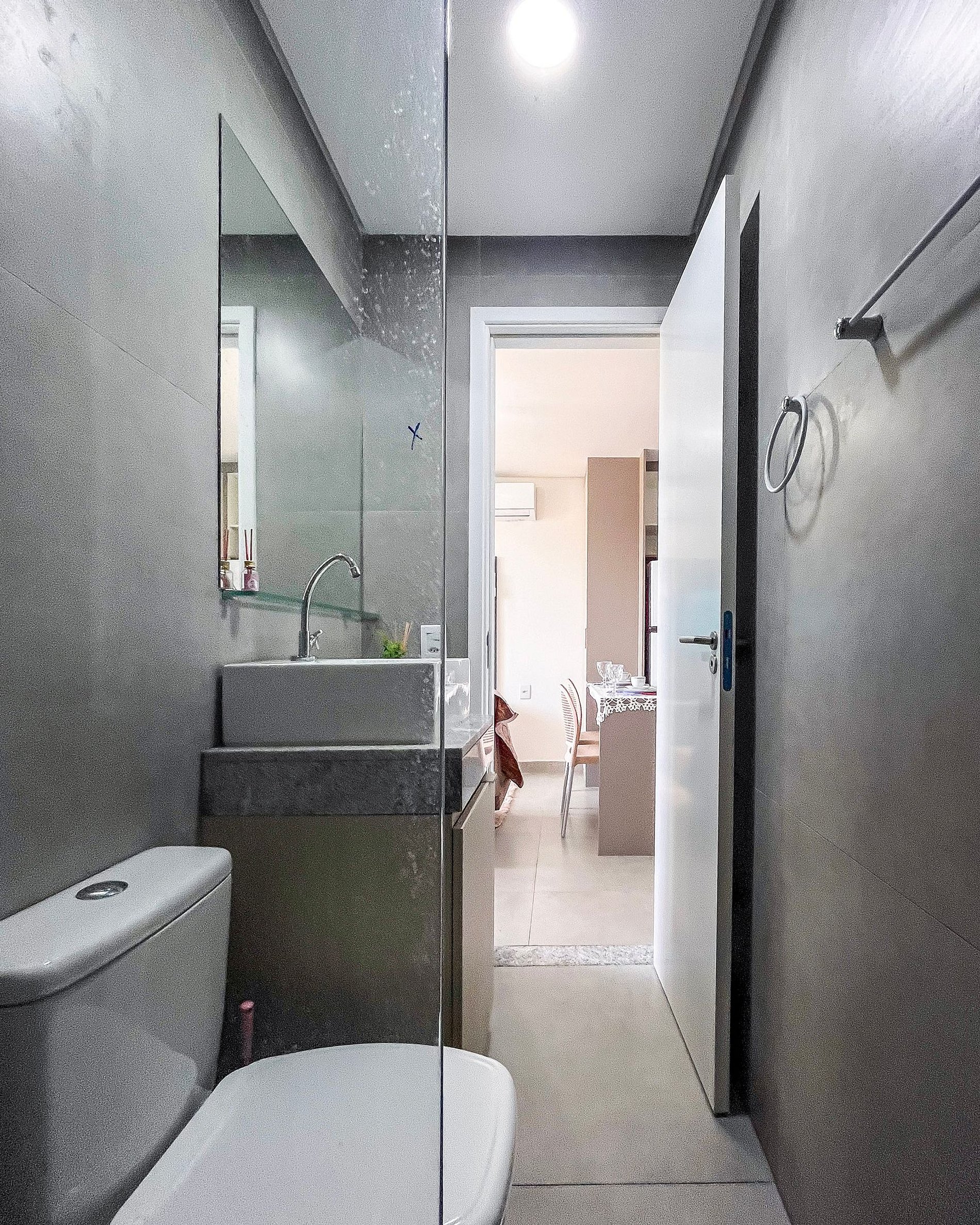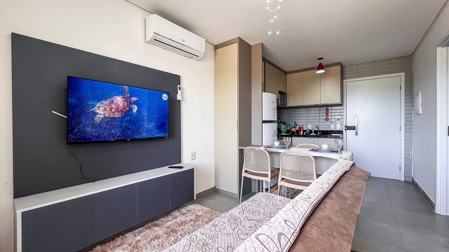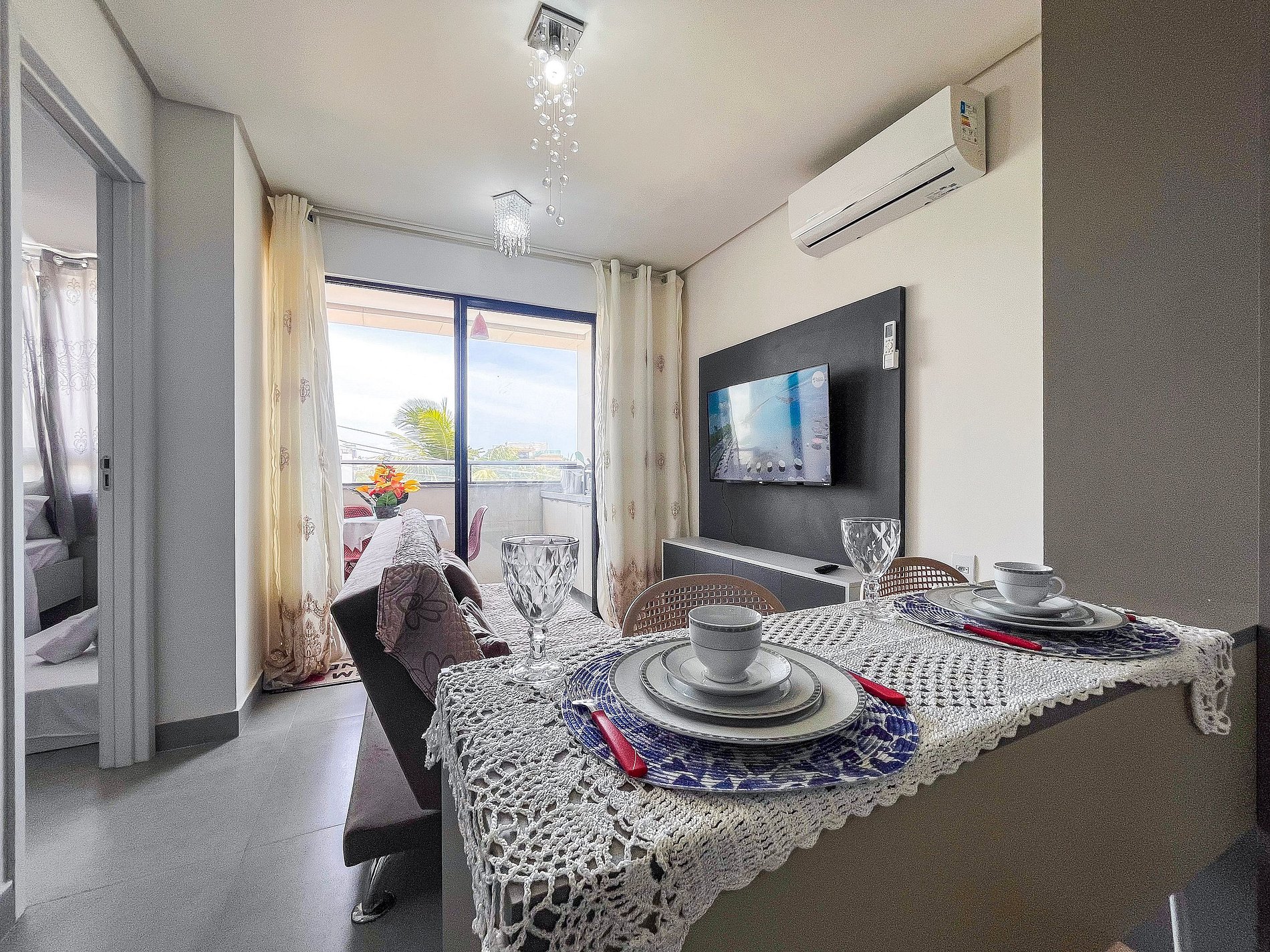 - A entrada no apartamento é feita através de fechadura eletrônica com senha disponibilizada previamente ao check-in.