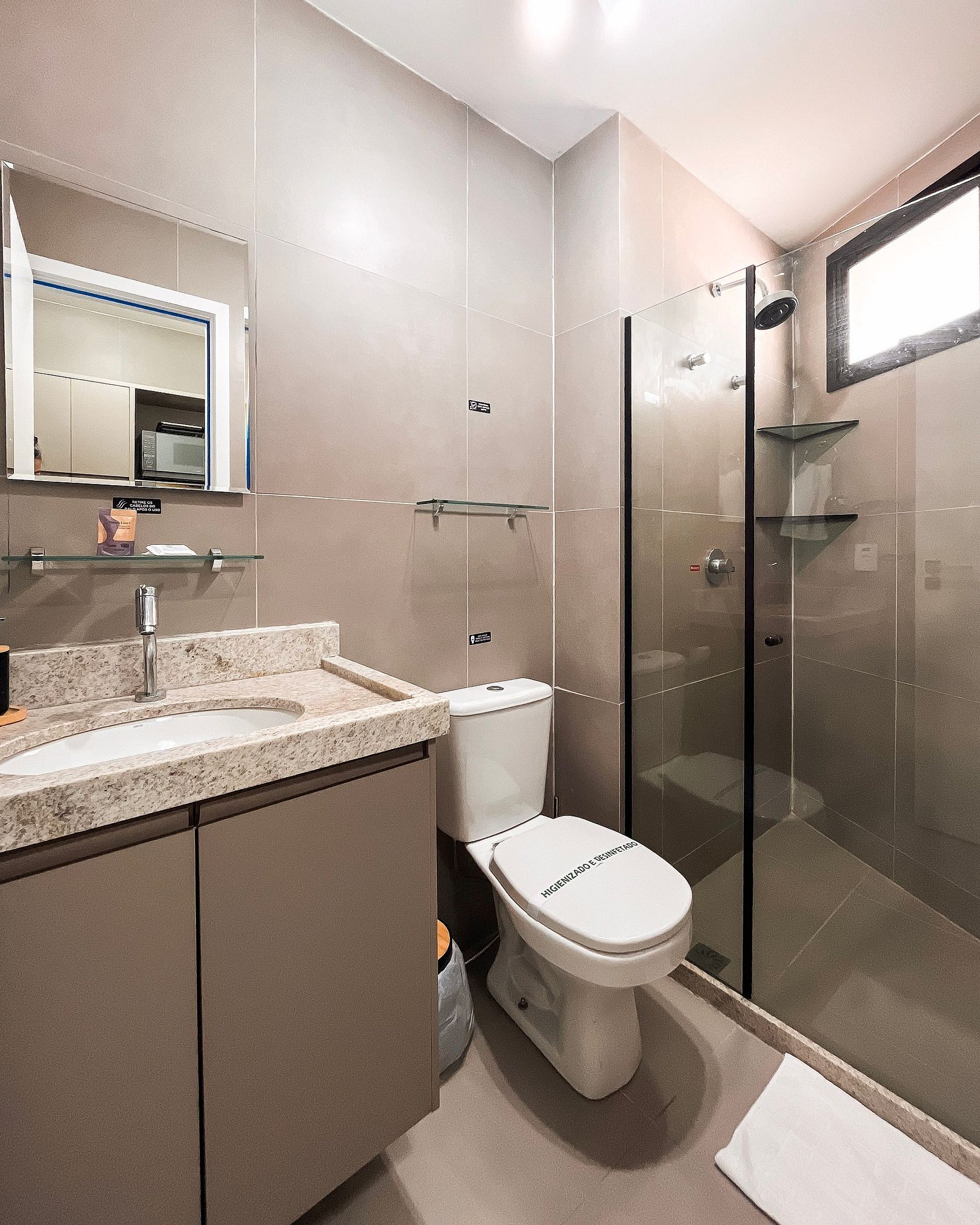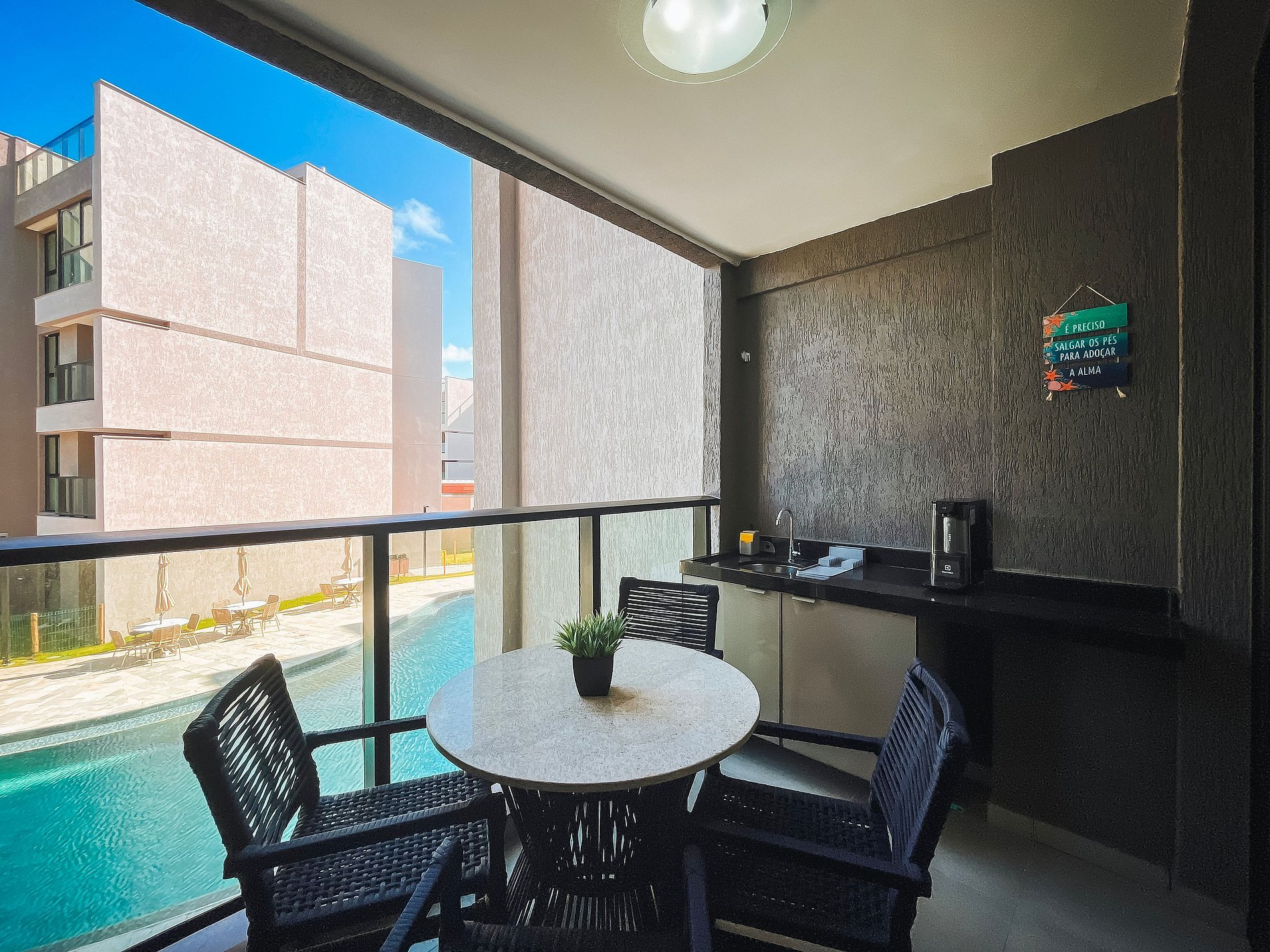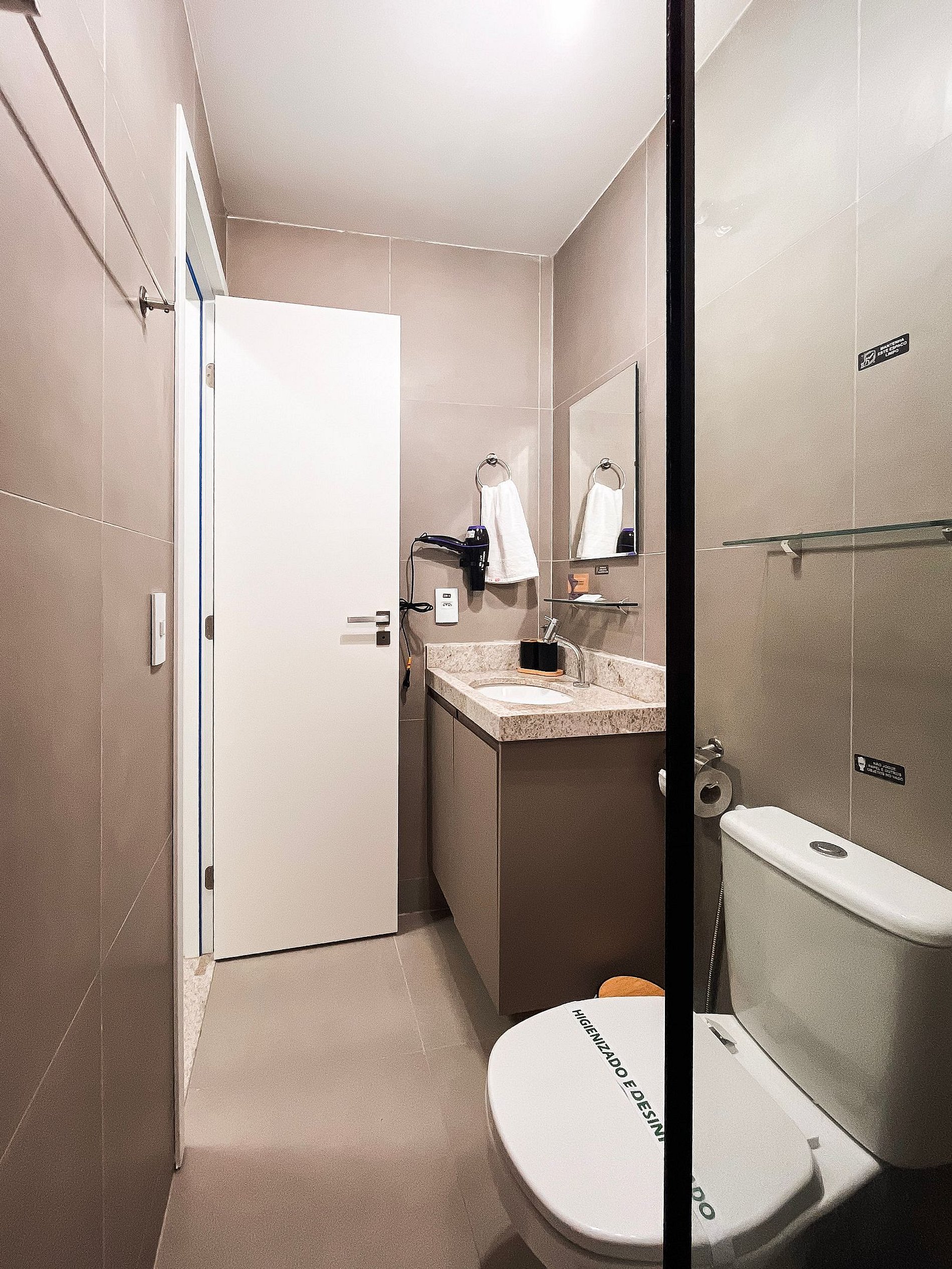 - A entrada no apartamento é feita através de senha enviada previamente ao check-in.