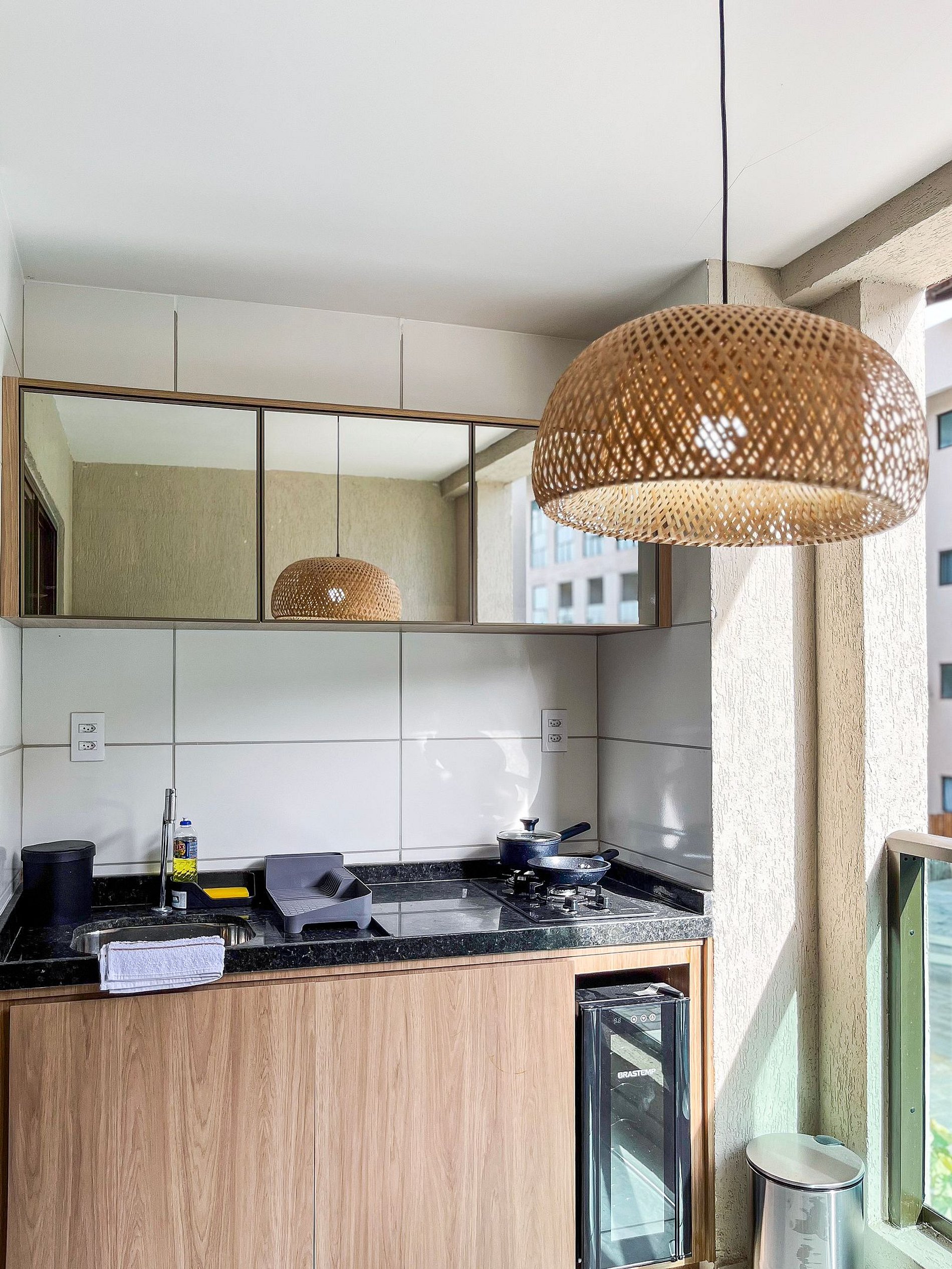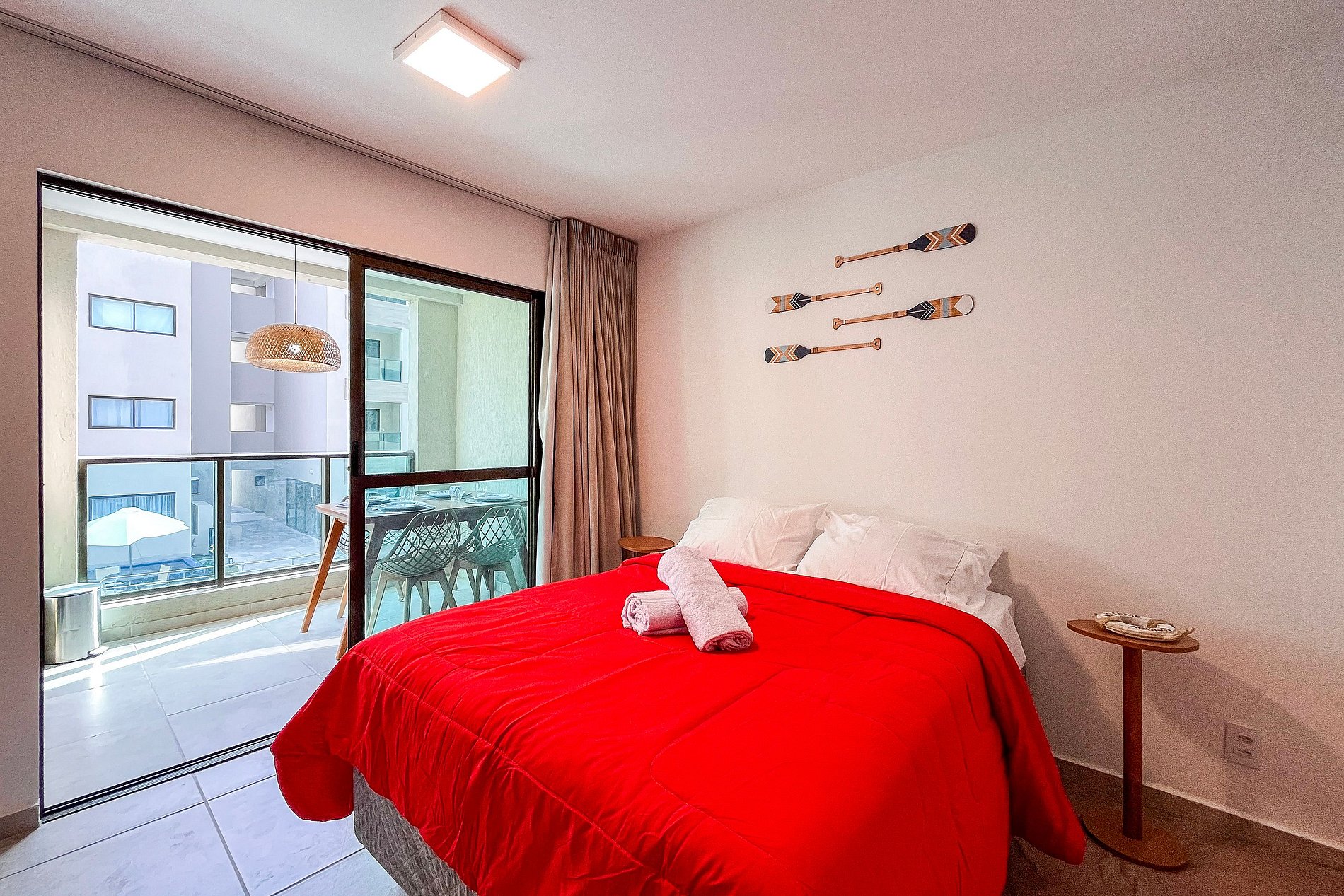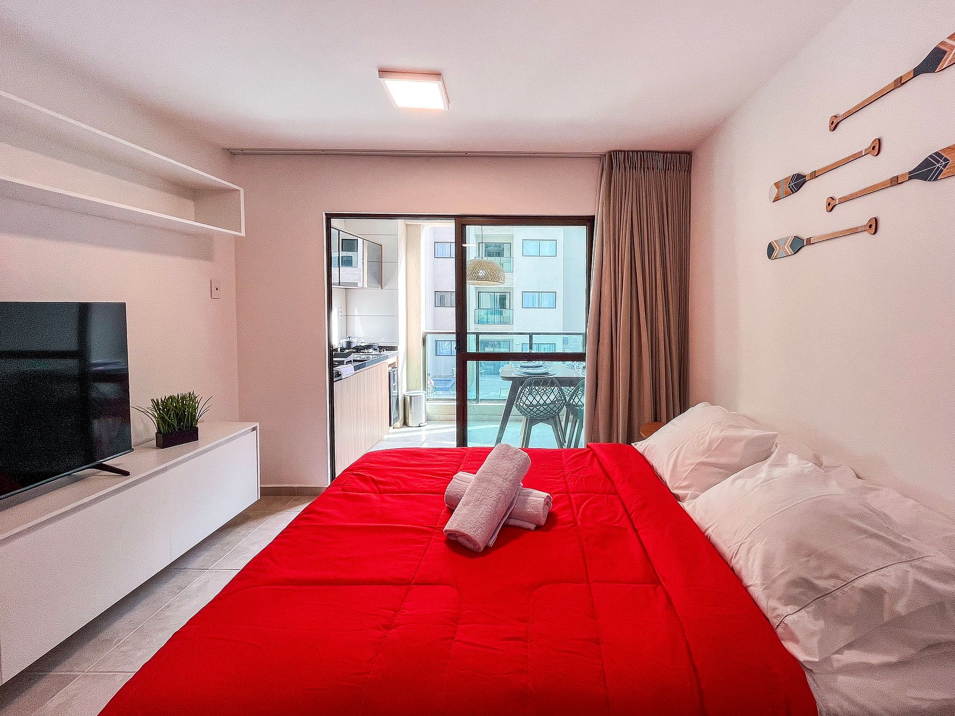 O studio foi planejado para oferecer praticidade e conforto durante toda a estadia: